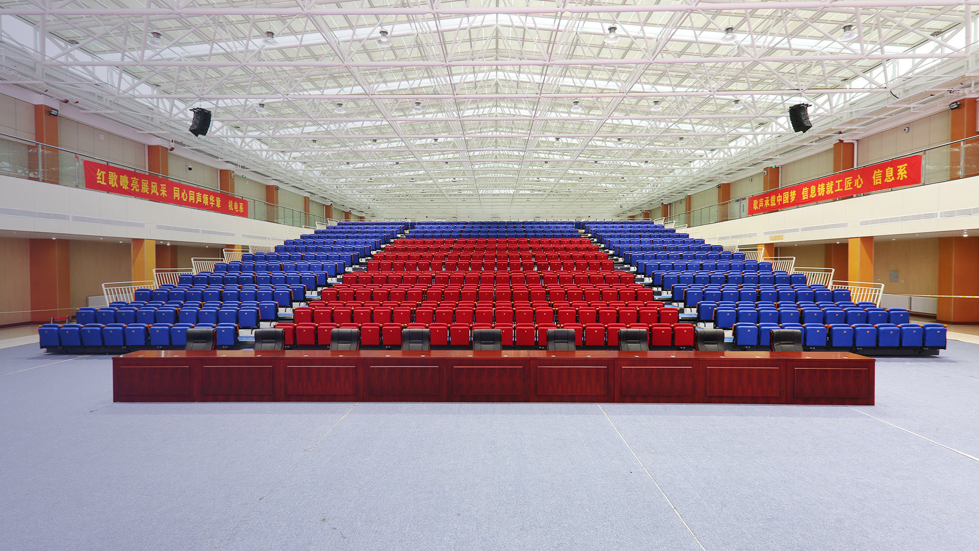 河北恒益誠舞臺設備有限公司始建于2008年,坐落在特區-雄安新區。地處京、津、保三角地帶,北離津保高速路口5公里,東鄰京九鐵路,西靠京廣鐵路,交通便利,位置優越。主要生產禮堂、會堂、影劇院、電視臺、大專院校、體育場館、候機廳等公共場所用椅。